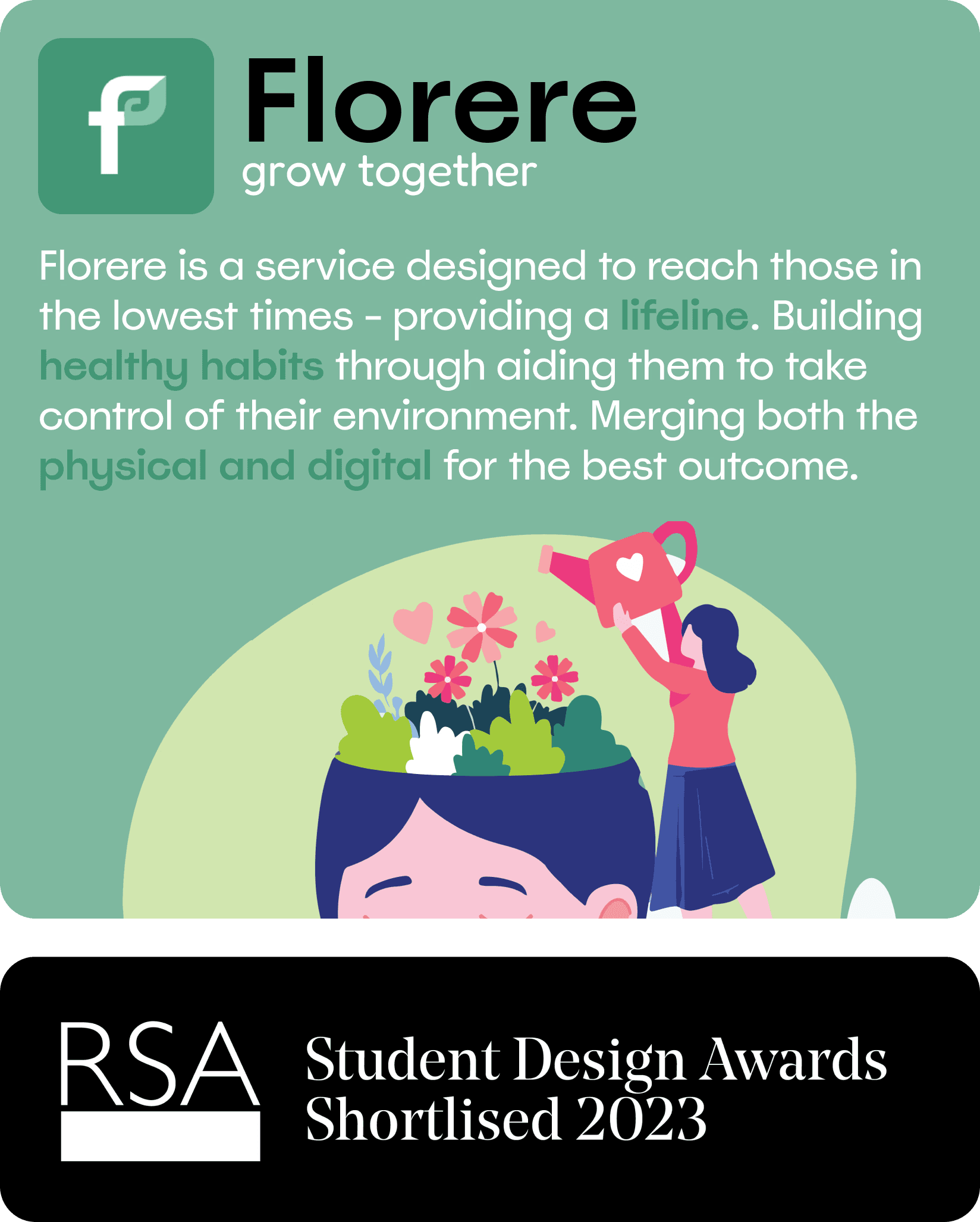 Florere is a service designed to reach those in the lowest times - providing a lifeline. Building healthy habits through aiding them to take control of their environment. Merging both the physical and digital for the best outcome.
